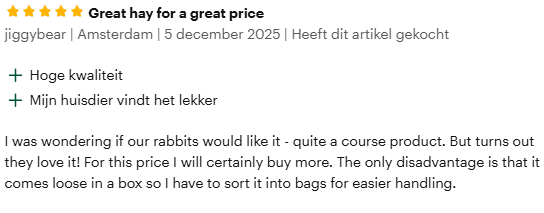 Met onze 'kleinveelijn' voorzien we knaagdieren door heel Nederland van het lekkerste groene ruwvoer!